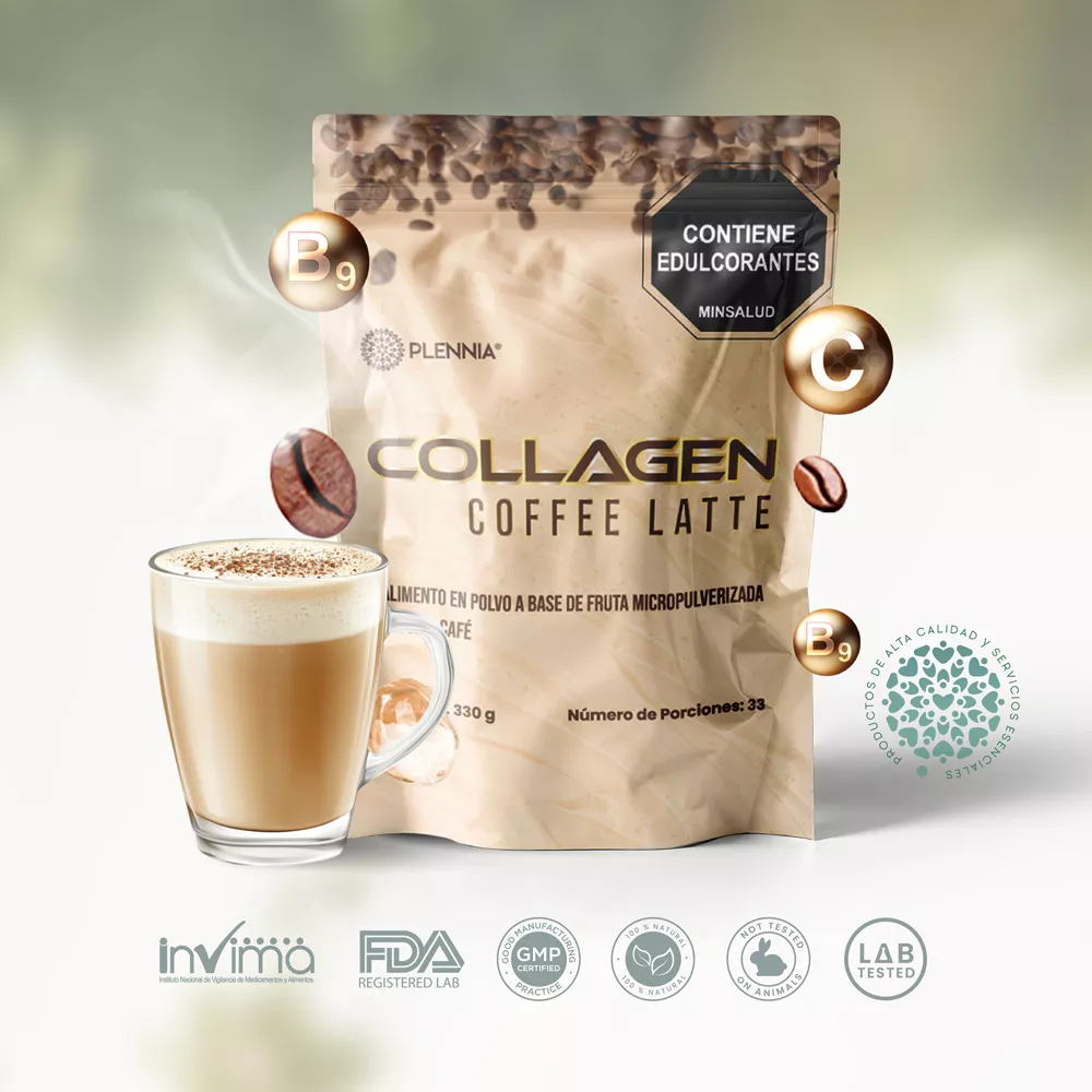 Café instantáneo colombiano, leche de coco en polvo, péptidos de colágeno hidrolizado, premezcla de vitaminas, citrato de magnesio, vitamina C.